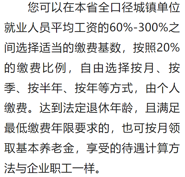 情況三:制度實(shí)施時(shí),您距60周歲的規(guī)定領(lǐng)取年齡超過15年,應(yīng)按年繳費(fèi),累計(jì)繳費(fèi)不少于15年才能領(lǐng)養(yǎng)老金。